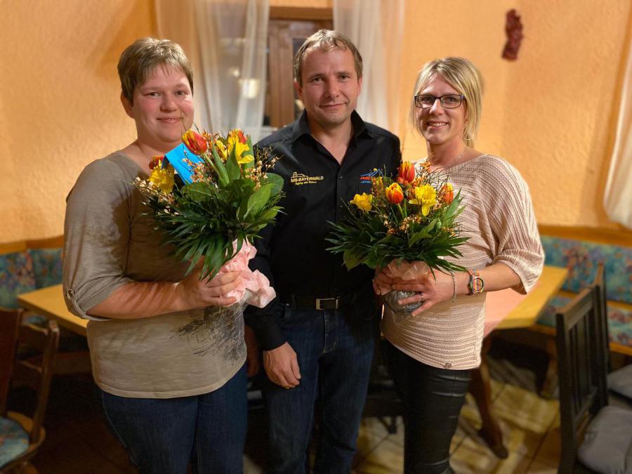 Verabschiedung langjähriger Vorstandsmitglieder (links im Bild) Monika Zitzelsberger und (rechts im Bild) Manuela Kaltenecker mit Vorstand Klaus Jocham bei der Jahreshauptversammlung.